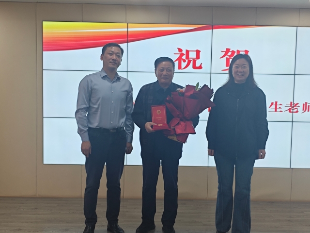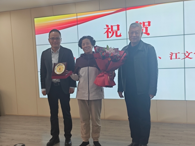 中心为八十岁的吴榴娣老师送上鲜花、纪念牌,也送上全体教职工的祝福。