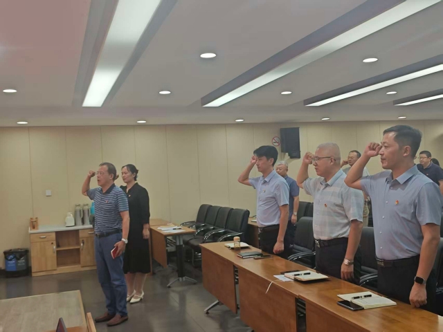 活动伊始,现场举行新党员入党宣誓仪式。今年7月,周爱珍同志正式成为预备党员,丁秀霞书记首先介绍了其入党历程,随后由中心党总支群工委员、第三支部书记刘斌领誓,新党员周爱珍同志高举右拳,庄严宣誓,全体党员同志重温入党誓词,铿锵有力的誓言回荡在会议室,既是新党员对信仰的誓言,也是老党员对初心的回望。