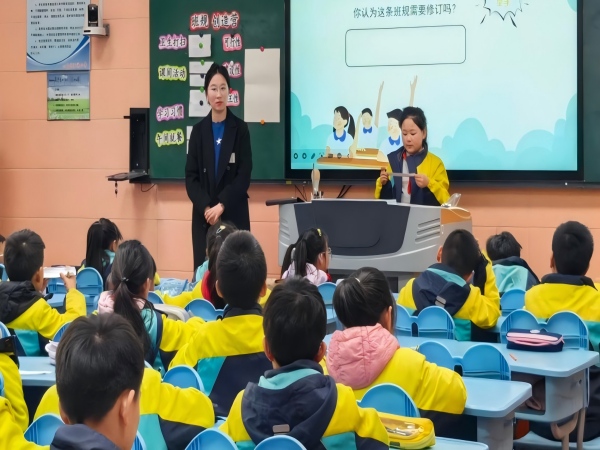 双语小学刘哲伶老师的《班规创造营》独具巧思,以“诊断室”“共创工坊”等趣味活动为载体,让学生在自主讨论、动手设计中成为班规制定的主角,在参与中凝聚集体力量、养成规则意识;城西小学朱晓燕老师的《走廊风景线》则将“记忆育德”理念融入校园日常,通过情景模拟、小组分享等形式,引导学生发现走廊中的文明细节,在体验中感悟公德、践行文明,让原本“路过的空间”变成了生动的“育人场景”,两节班会课风格鲜明、实操性强,为班会课提供了鲜活范例。
