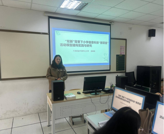 金牛湖中心小学赵美淑老师以“双新”为背景,分享小学信息科技“微项目” 教学模型,构建“真实情境—分工探究—作品展示—多元评价”的实操范式,结合跨学科案例展示成效,为一线教学提供可复制的经验。