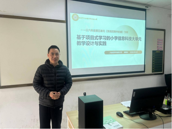 随后,两场专题讲座带来专业引领。六合经济开发区小学郝啟标老师以《系统控制中的量》为例,分享大单元项目式教学实践。以校园智能种植园为真实情境,按“认识—辨识—控制—融合量”四课时递进,融合项目学习与大单元教学,通过开源硬件与编程实践,让学生掌握量的特性与控制逻辑,全程嵌入多元评价,提升学生数据思维与应用能力。