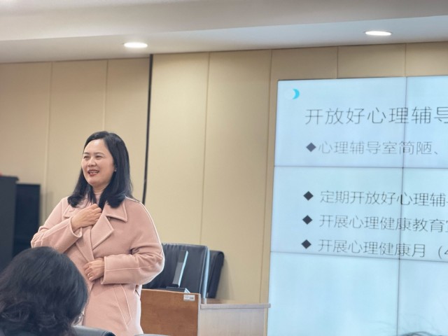 随后区教师发展中心周爱珍老师以“夯实基础促规范,润心育人常态化”为主题,全面复盘上学期心育工作。她从四个方面系统总结:抓实心理课堂教学,保障课程规范落地见效;精准开展重点学生关爱,构建个性化帮扶机制;规范心理辅导室开放管理,畅通学生心理求助渠道;同时引导心理老师科学规划个人成长,全方位助力其专业能力与素养提升。