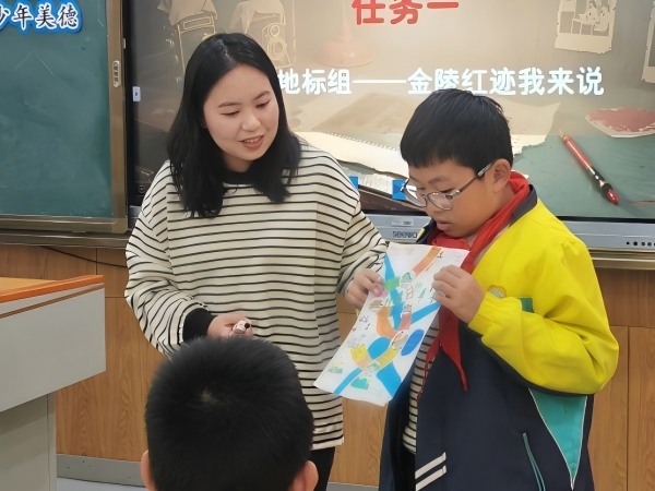 随后,双语小学庄白露老师带来《光影中的金陵英烈,行动中的少年美德》班会课,学生分组分享南京红色地标、烈士故事及当代践行红色精神的案例,在 “担当心愿卡”书写与张贴仪式中,将红色精神转化为日常行动。