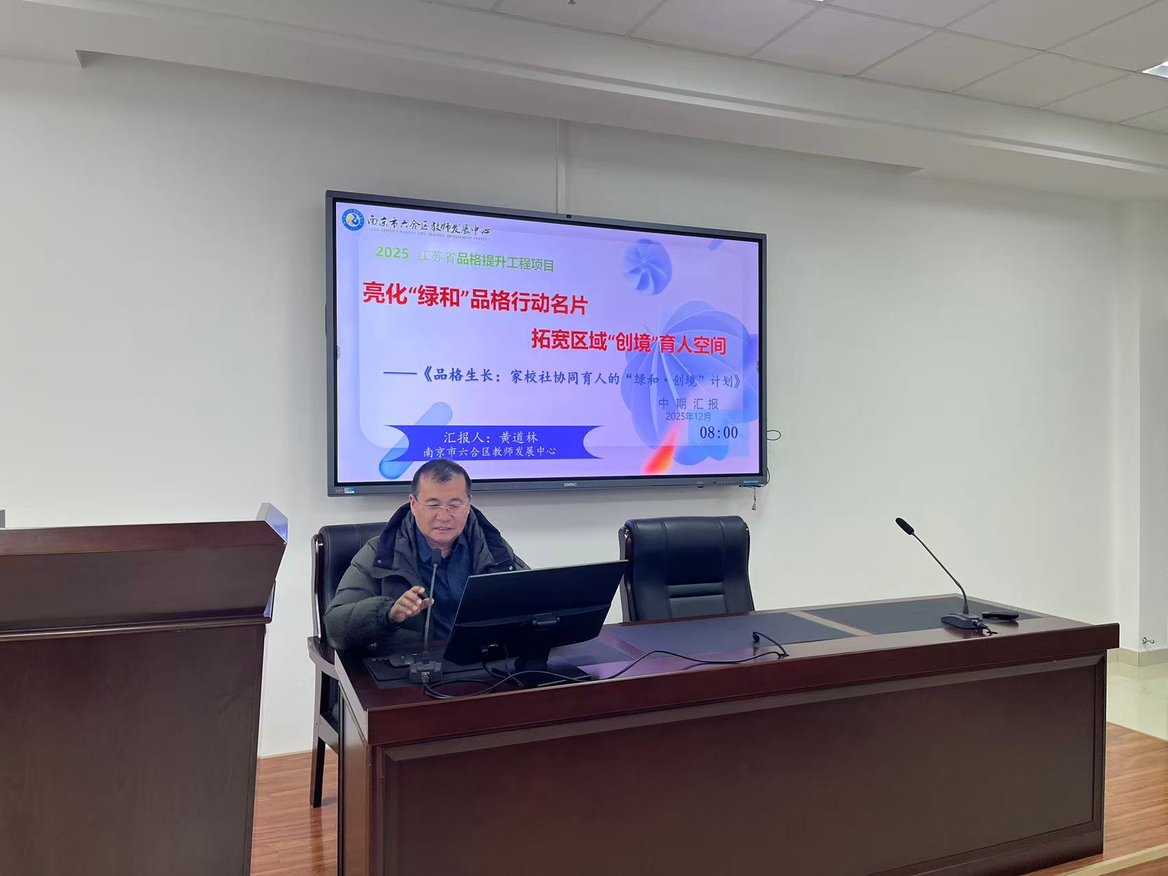 12月24日,与会老师共同聆听省内六所中小学红色文化育人展示报告。接着,在分组中期交流研讨中,黄道林主任代表六合区项目组做主题为《亮化“绿和”品格行动名片 拓宽区域“创境”育人空间》的中期汇报。黄主任结合项目《品格生长:家校社协同育人“绿和·创境”计划》详细分享了项目背景、实施路径、项目中期成效等方面,最后以一个专题片《流动的学堂 永恒的守望》作为成果分享,受到三位专家一致好评。