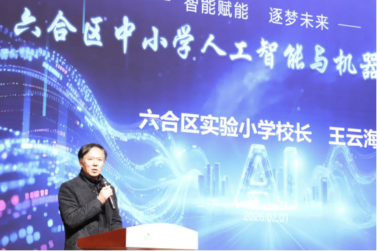 作为承办方,六合区实验小学校长王云海致欢迎辞时表示,人工智能浪潮正深刻改变时代,科技赋能成长之路广阔无垠。实验小学始终以“童心智造创享未来”为初心,将科技教育融入校园文化、课堂教学与社团活动。此次承办赛事,既是为全区青少年搭建交流展示的优质平台,也是学校科技教育成果的集中彰显,更承载着助力区域人工智能教育普及的责任。他寄语选手们“不负韶华、奋勇争先,在心中播下热爱科技、追逐梦想的种子”。